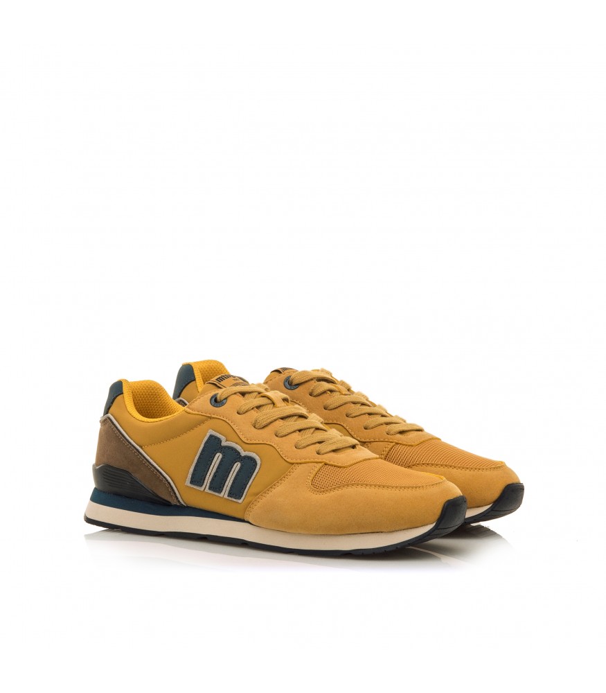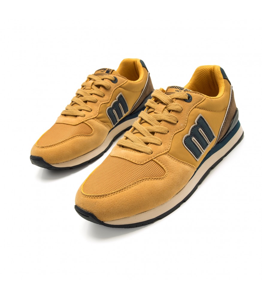 Zapatilla deportiva de hombre Mustang Nixon en color mostaza, diseño moderno, materiales de alta calidad. Combinación de textil, sintético y serraje, suela ligera y antideslizante, plantilla acolchada y transpirable. Tallas disponibles: 40-45.