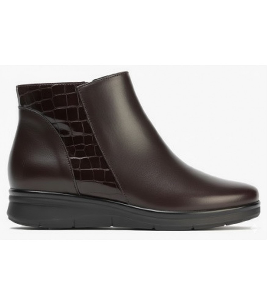 Botín para mujer de la marca Pitillos en color marron. Fabricado en piel auténtica de primera calidad y alta resistencia. Diseño liso con detalle de grabado de coco en la parte trasera. Forro interior transpirable. Cierre mediante cremallera en el lateral interno, para facilitar la puesta. Plantilla acolchada, que ofrece máxima sensación de comodidad al caminar, ideales para el día a día. Puntera redondeada. Suela de goma antideslizante, con pequeña cuña para mejorar la postura.