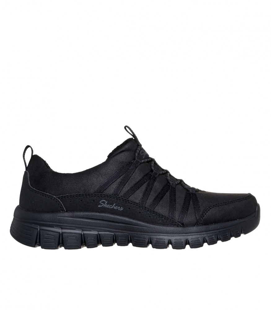 Zapatillas Skechers 100889 para mujer en color beige. Deportivas con cordones elásticos, suela de goma termoplástica, altura 2 cm, exterior textil, forro transpirable y plantilla memory foam no extraíble. Tecnología de confort Skechers, colección innovadora para mujeres.