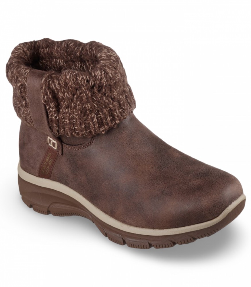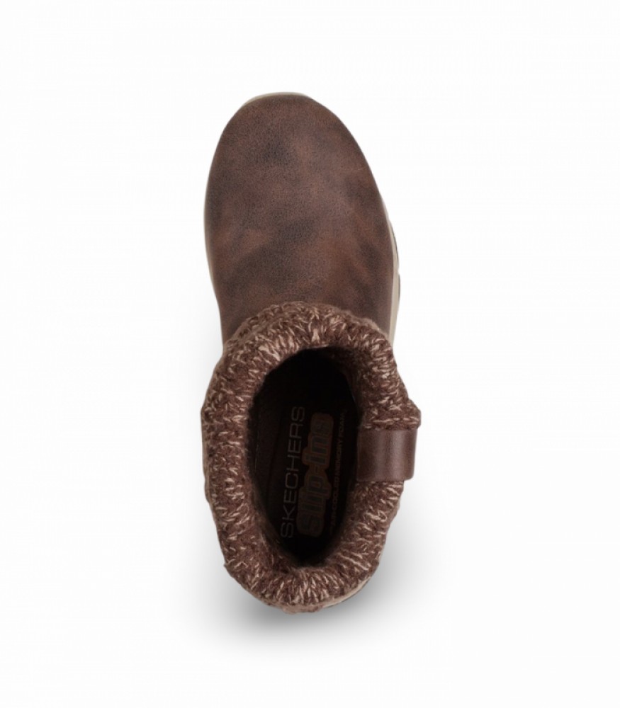 SKECHERS 168033 Slip-ins Relaxed Fit: Easy Going marrón chocolate. Botín marrón chocolate para mujer con cuello de tejido tipo calcetín y estructura flexible. Cuenta con suela de goma EVA ligera y diseño slip-ins que permite calzarlo sin esfuerzo. Calidez, comodidad y estilo en un solo modelo pensado para el frío.
